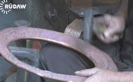 محمد عبدو.. آخر صانعي أهلة المساجد في فلسطين ... محمد عبده بجد لإنجاز هذه القطعة النحاسية، التي تمثل جزءا من هلال يعمل على تجهيزه لأحد المساجد الجديدة، فهو الوحيد في فلسطين الذي يمتهن تصنيع هذه الأهلة .