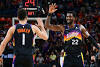 | دوري "إن بي ايه": فينيكس يلحق خسارة قاسية بليكرز الحق فينيكس صنز خسارة قاسية بلوس انجليس ليكرز بالفوز عليه 108-90 ضمن دوري كرة السلة الأمريكي للمحترفين في مباراة شهدت اصابة نجم الاخير ليبرون جيمس في كاحله. وساهم الثنائي ديفون بوكر العائد الى صفوف فينيكس بعد اصابة ابعدته عن المباريات السبع الاخيرة لفريقه، ودياندري ايتون بفوز فينيكس بتسجيل الاول 24 نقطة مع 9 متابعات و7 تمريرات حامسة، في حين اضاف الثاني 18 نقطة و11 متابعة ليقودا فريقهما الى فوز رابع تواليا والسادس في اخر سبع مباريات. ويملك صنز متصدر المنطقة الغربية، افضل سجل في الدوري منذ مطلع الموسم ... | |
