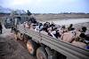 Israeli soldiers stand by a truck packed with shirtless Palestinian detainees, amid the ongoing conflict. أمنستي: قانون المقاتلين غير الشرعيين يسمح بتفشي التعذيب ويمأسس للإخفاء القسري (رويترز).