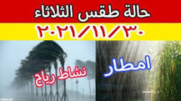 | حالة الطقس اليوم الثلاثاء 30-11-2021.. انخفاض في درجات الحرارة وسقوط أمطار - موقع مصر الإخباري فرص ضعيفة لسقوط أمطار خفيفة قد تتوسط متفرقة على مناطق متفرقة من سواحل محافظة مطروح وسواحل الإسكندرية وسواحل البحيرة والعريش ورفح ، نسبة التوقع ...