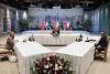 استضاف الرئيس التركي رجب طيب أردوغان في إسطنبول اليوم الجمعة، قمة مصغّرة بمشاركة رئيسة الوزراء الإيطالية جورجا ميلوني ورئيس حكومة الوحدة الوطنية الليبية عبد الحميد الدبيبة، تناولت التعاون المشترك وقضايا إقليمية. وقالت وكالة الأناضول التركية إن أردوغان أكد أهمية التعاون بين الدول الثلاث لمواجهة التحديات في حوض المتوسط بما في ذلك الهجرة غير النظامية، مشيرا إلى الحاجة إلى حلول مستدامة وطويلة الأمد لتجفيف مصادر الهجرة غير النظامية، وضرورة التنسيق متعدد الأطراف في هذا الصدد.