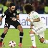 | ريال مدريد بطلًا لكأس العالم للأندية وعين "الشحات" يكتفي بالوصافة توج ريال مدريد بطلًا لكأس العالم للأندية، بعد الفوز 4-1 على العين الإماراتي صاحب الأرض في المباراة النهائية التي أقيمت على استاد مدينة زايد الرياضية. فاز ريال مدريد بكأس العالم للأندية للمرة الثالثة على التوالي والرابعة في تاريخه، فيما تعد تلك المرة الأولى للعين في النهائي، والثانية في تاريخ مشاركات الأندية العربية بالبطولة. سحنت فرصة لصالح ريال مدريد بشكل مبكر، بعدما ذهبت الكرة إلى بنزيمة في الدقيقة الثالثة وصوبها في القائم الأيسر. وحصل حسين الشحات على الكرة في الدقيقة الخامسة في مواجهة كورتوا ... | |