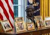 | تمثال تشرشل حائر بين رؤساء أمريكا.. أزاله أوباما وأعاده ترامب.. فماذا فعل بايدن؟ عاد تمثال رئيس وزراء بريطانيا الراحل وينستون تشرشل إلى المكتب البيضاوي في البيت الأبيض في أول أيام عمل الرئيس الأمريكي الجديد جو بايدن، في خطوة رصدتها صحيفة "واشنطن بوست" الأمريكية، بعد سنوات من الجدل بشأن هذا التمثال النصفي. A look inside Biden's Oval Office | The Seattle Times. وبدأ تمثال تشرشل يثير الجدل في البيت الأبيض في عهد الرئيس الأمريكي الأسبق باراك أوباما، حينما أصدر قرار بإزالته في عام 2009، والاستعاضة عنه بتمثالين للرئيس الأمريكي الراحل إبراهام لينكولن، وزعيم حركة الحقوق المدنية في ... | |